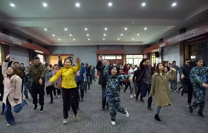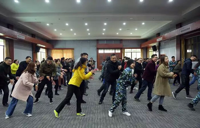 我們一齊圍成一個圈,互相拍拍肩、捶捶背,認識熟悉,鼓勁加油。玩兒個“聽口令”的小游戲,被抓到的同志可是要上臺表演節(jié)目呢!